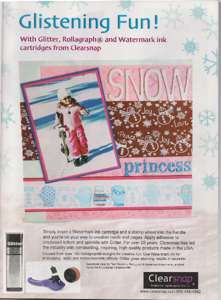 first, i have something exciting to share; Clearsnap used 2 more of my layouts in their print ads this month!
