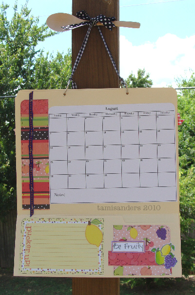 my idea for the calendar was that as you run across recipes in magazines or newspapers, you could tuck them in the pocket for the month they would most likely be used in. picnic ideas? tuck them in july to use for those 4th of july picnics, grilling recipes? pop them in june, Christmas cookies or snacks? slip them in the december pocket and come Christmas 2011 – you won’t be wondering what you did with them! we all cut and tear out recipes, but when we finally get around to wanting to try them, most of us can’t remember where we put them! now they’ll be at hand, in one easy to find location. you can also tuck in coupons for any special items along with the recipe so you’ll know where to find them as well.