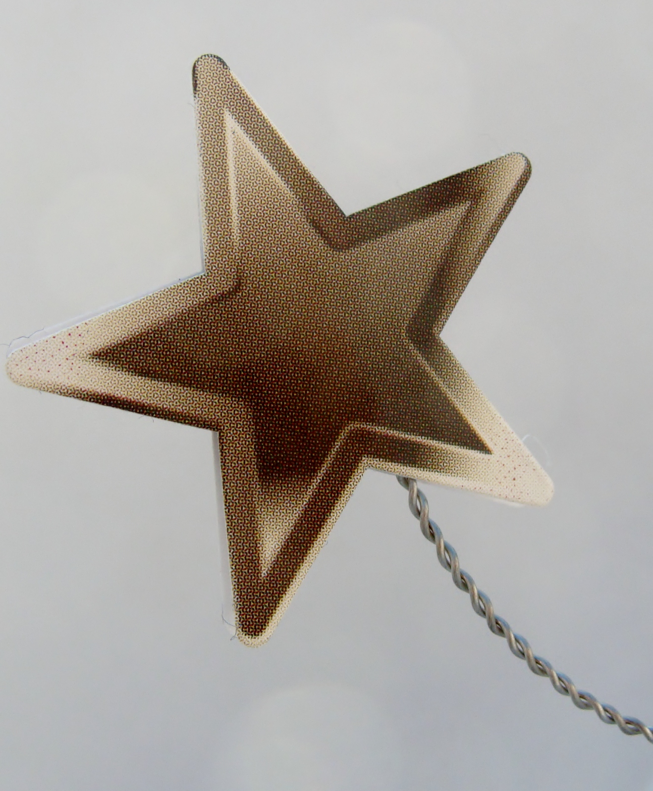 to add a little more bLinG, a few stars from the HOLLYWOOD 12 X 12 ICON STICKER were adhered back to back to pieces of wire with a pop dot in between…