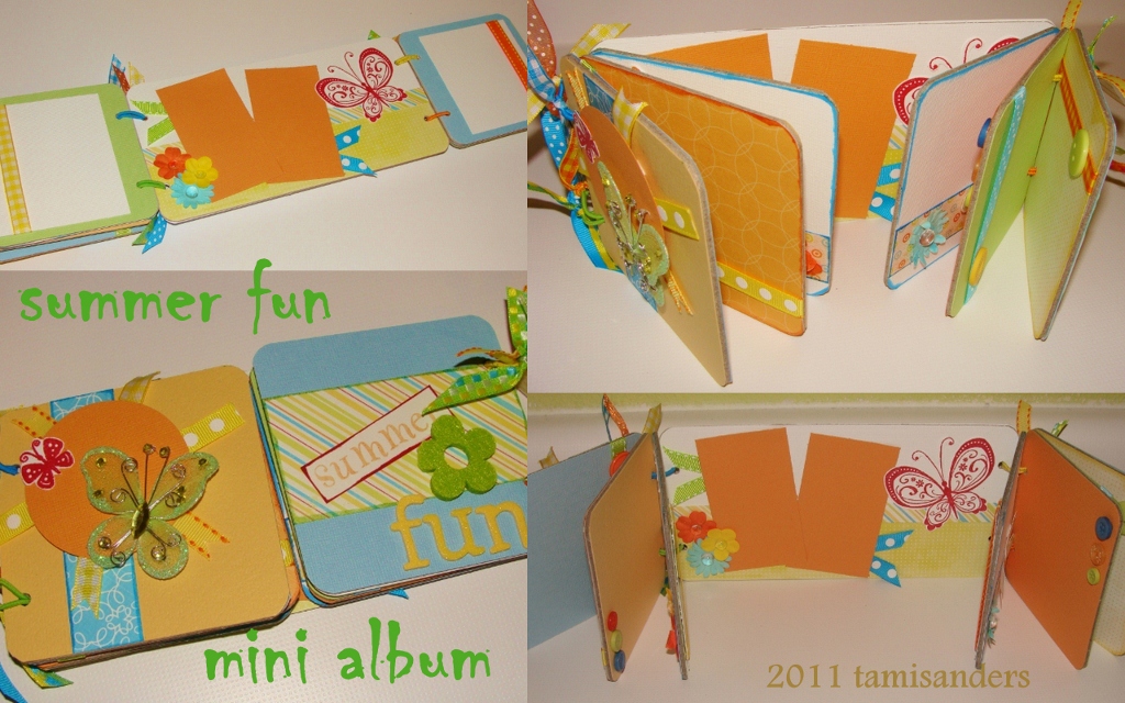 the summer fun mini album is a new mom & me project. so if you have kids that will soon be out of school and BORED, take them to a class! you and your child will work together on one project during the class time. and you’ll leave with a unique and fun little book that they can fill with photos of their summertime events. this class is geared to kids ages 6 and up.