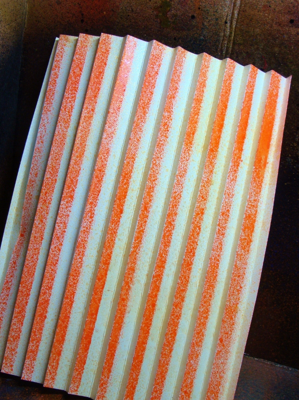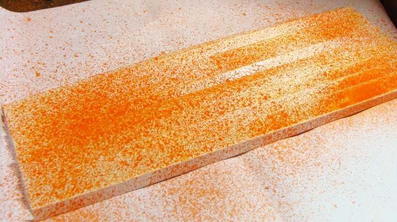 once the paper is pleated and secured to a scrap paper, place in the Color Catcher and spritz with Carrot Cake Smooch Spritz…