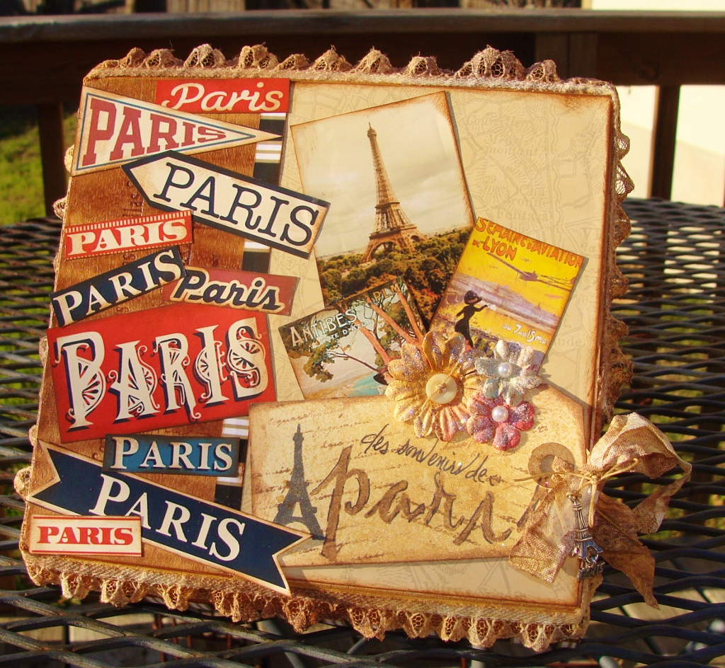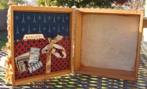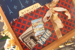 and finally, my favorite of the new lines – Travelogue, a gorgeous vintage-inspired line for your “cosmopoitan” desinations – new york, paris, italy and london. i made this altered cigar box to hold trip treasures…