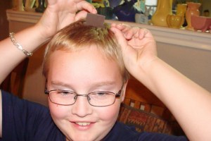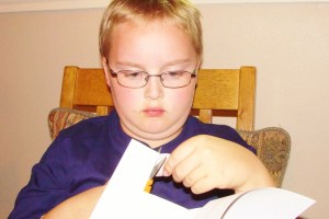 most of the projects, if not all, are kid friendly. my youngest son chris is quite the crafter, so i thought it would be fun to try out a project with him. so we turned to that day’s date, september 20, and found MINI PARTY PERSON GIFT TAG. perfect! chris had a birthday party to go to that weekend. so we gathered up the supplies and got to work.