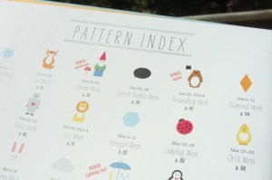 the weekly themes are all listed in a unique visual pattern index that includes the week the projects are for…