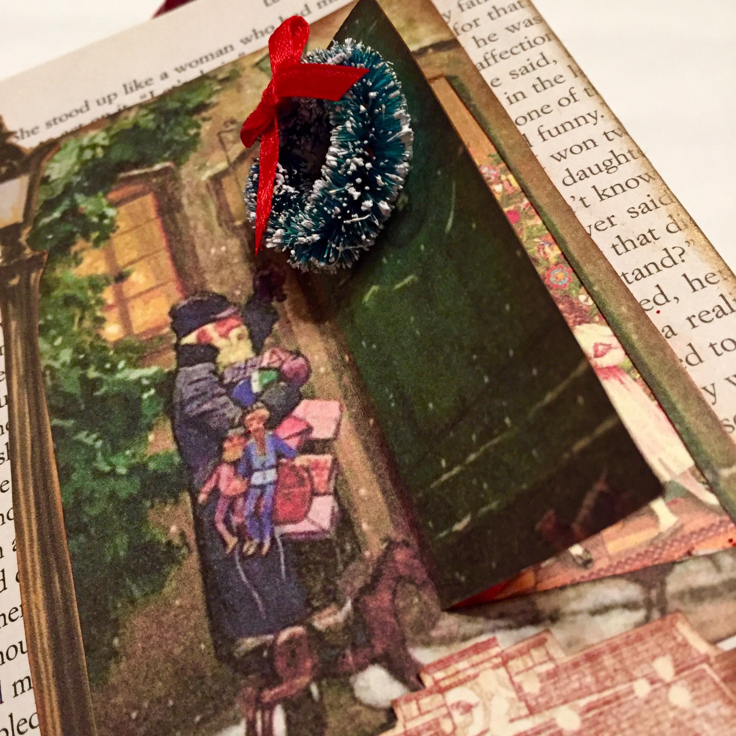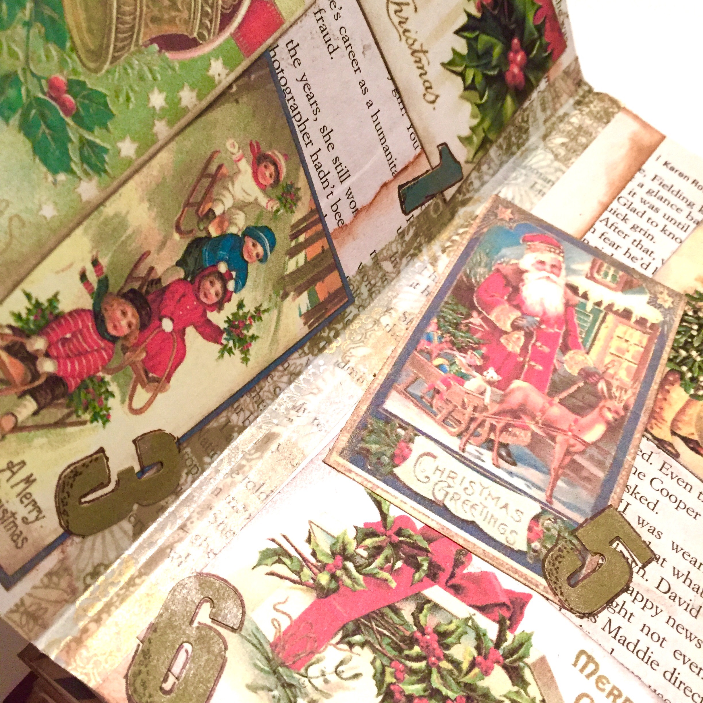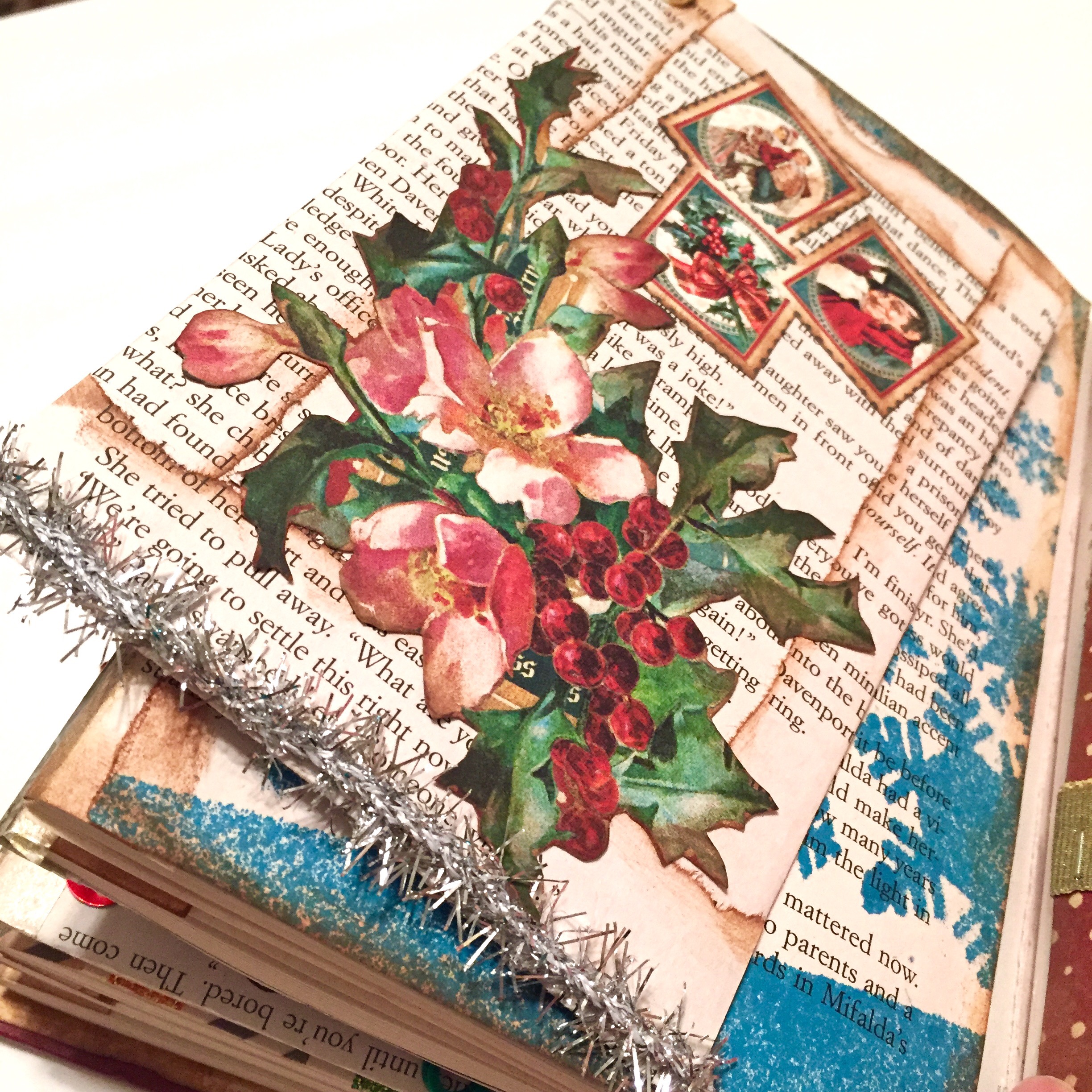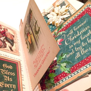 i’m happy to report that the sample book for the christmas altered book class is just about DONE!!! i need to add tags and a few little bits here and there, but it’s about 95% complete.