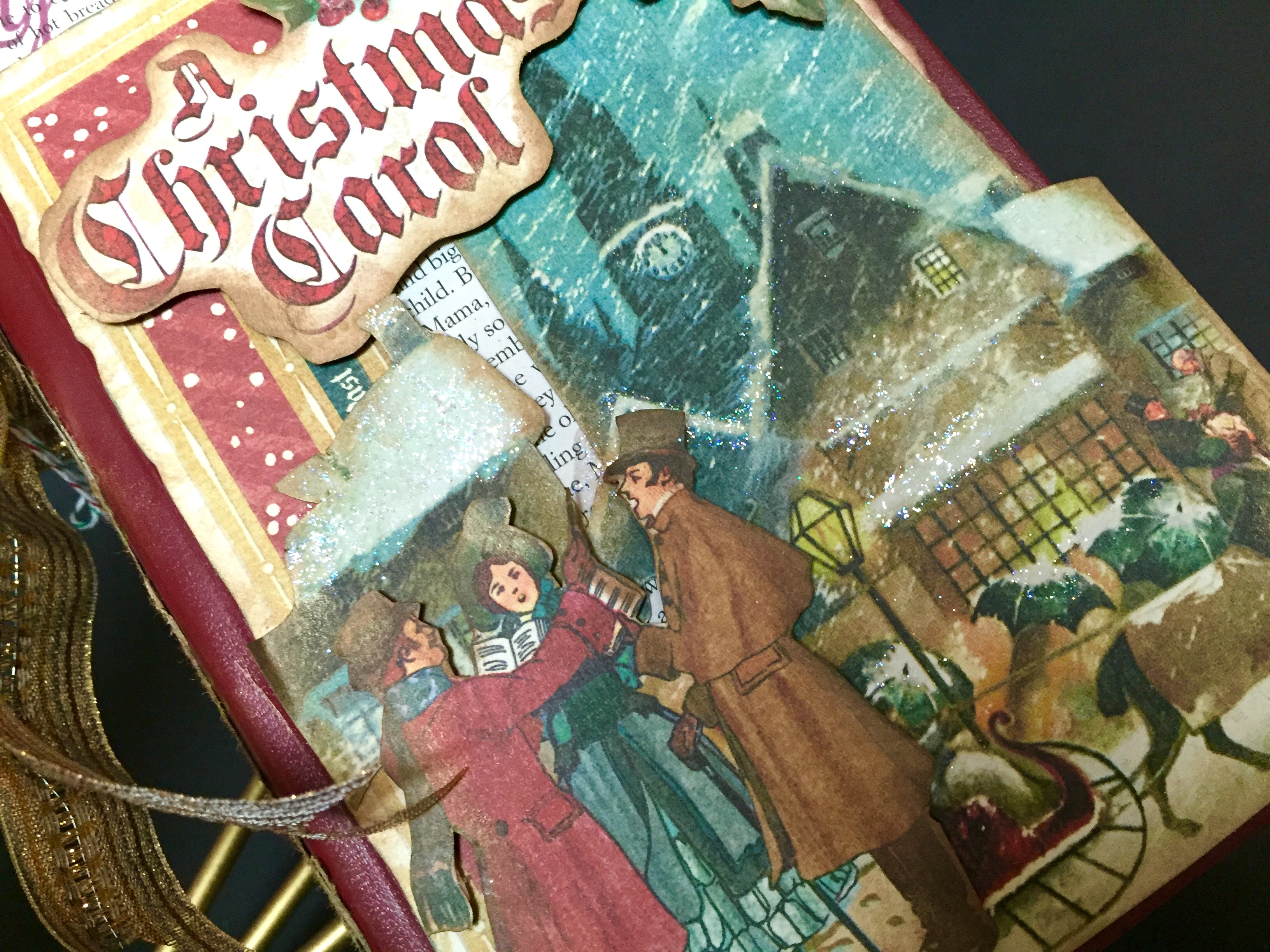 so without further ado, here are pics of the next book in my altered book series… dicken’s christmas {click to enlarge}