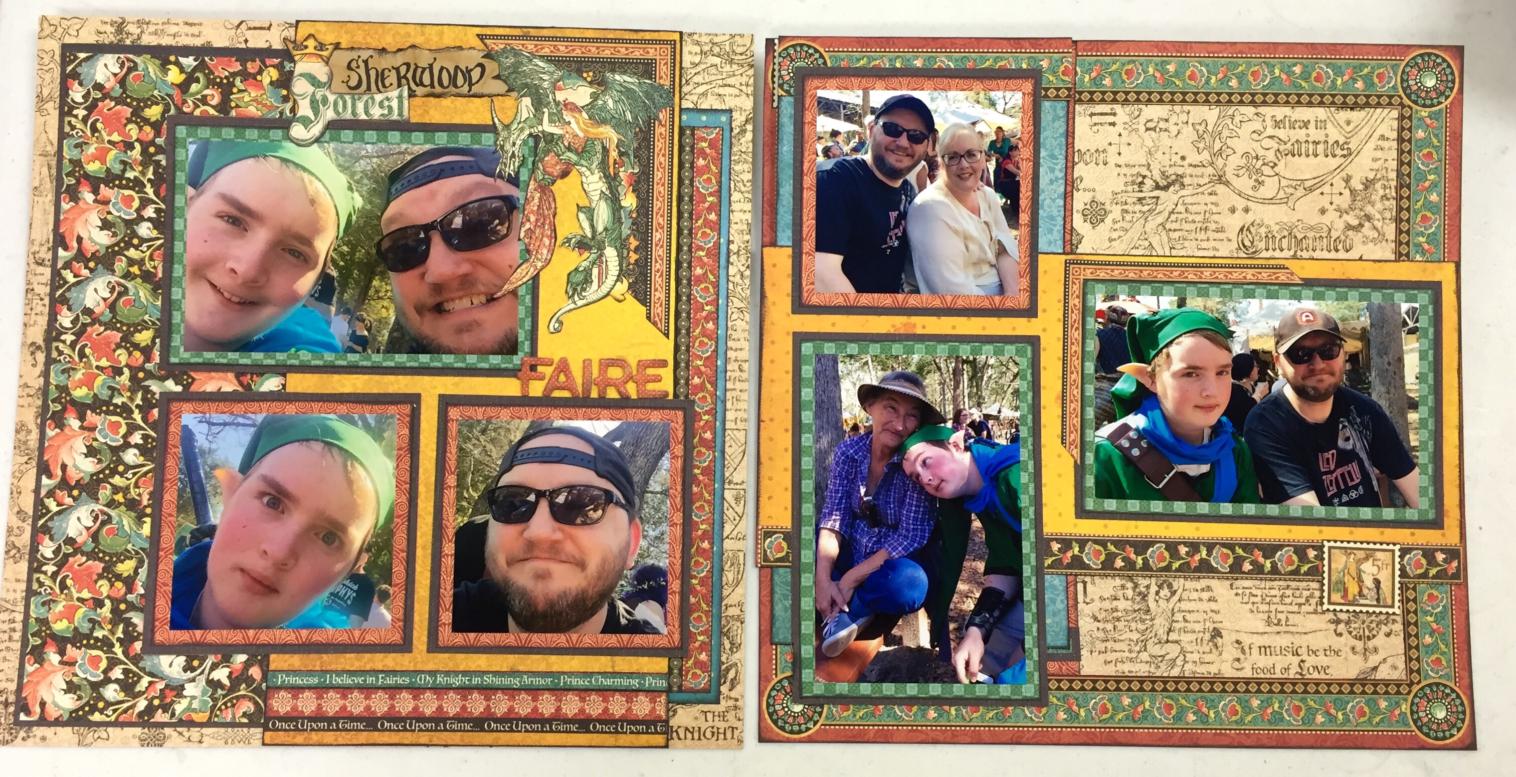 i was scrappin’ photos from the Sherwood Forest Faire rennaissance festival and was EXCITED to find THE perfect paper for the layouts – G45’s Enchanted Forest Collection. (scrapbook n’ more always has the latest and greatest from Graphic 45).