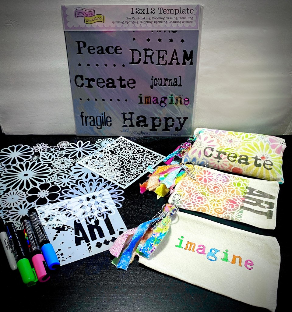 i’ve designed for several companies that make or made stencils: clearscraps, clearsnap and TCW – the crafter’s workshop, which are the brand i used for these projects.